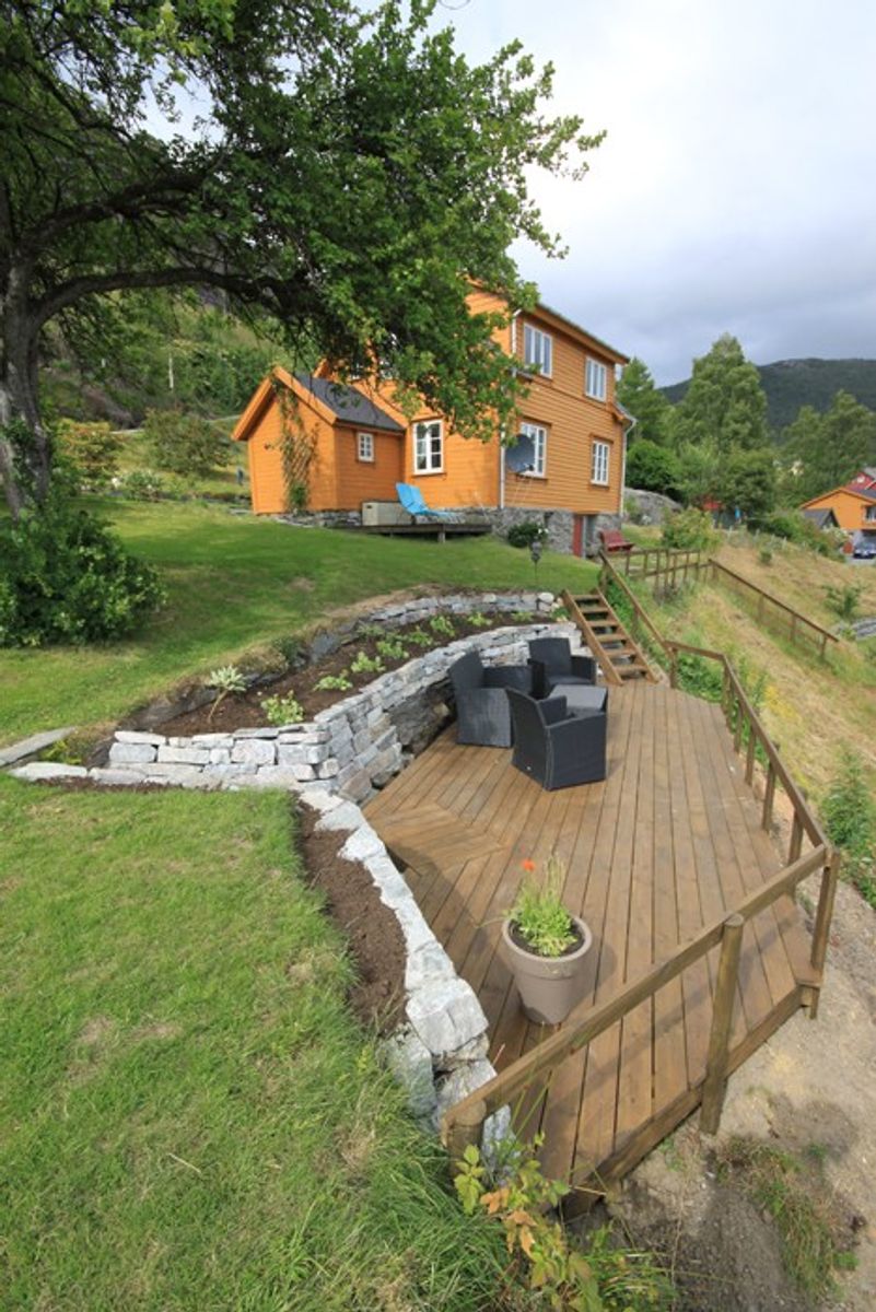 Die Landschaft ist offen und hell, wobei die Berge, die für sowohl Gross als auch Klein zugänglich sind, im Hintergrund den Rahmen bilden. Vom Waldrand zu den Bergen hin gibt es zahlreiche Waldpfade und Traktorwege, die in ein friedliches Waldgebiet hinaufführen. Hier können Sie einen ganzen Tag wandern, ohne eine Menschenseele zu treffen. Auf dem Weg hinauf gibt es viele kleine und grossere Seen, in denen man Forellen angeln kann. Oben angelangt, werden Sie einen traumhaft schönen Blick auf die Berge und den Fjord, auf die Felsen und die Inseln haben. Geniessen Sie die wärmenden Strahlen der Sonne, atmen Sie die reine Gebirgsluft tief ein und trinken Sie dazu eine Tasse von Ihrem mitgebrachten Kaffee - und Sie werden sich wie im siebten Himmel fühlen! In anderen Teilen der Gemeinde gibt es Berge, die sogar für die Mutigen unter uns eine Herausforderung darstellen - hier kann man z.B. klettern. In Verbindung mit dem Ausbau der Wasserkraft in der Gemeinde wurden bis weit ins Gebirge hinein befahrbare Wege angelegt - ein Ausflug hierher ist ein herrliches Erlebnis, das man sich nicht entgehen lassen sollte!